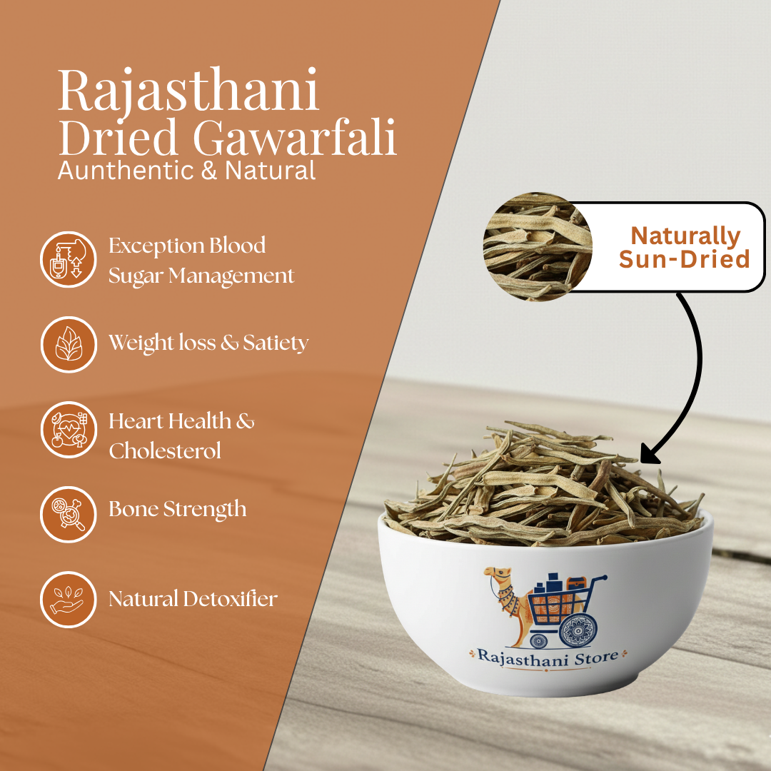 Dried Gawarfali (also known as Sukhi Gwar Phali or Dried Cluster Beans) is a sun-dried preservation of the young pods of the cluster bean plant (Cyamopsis tetragonoloba). In the arid regions of Rajasthan and Gujarat, where the scorching summer heat makes fresh produce scarce, drying Gawarfali is a traditional practice to ensure a year-round supply of greens.