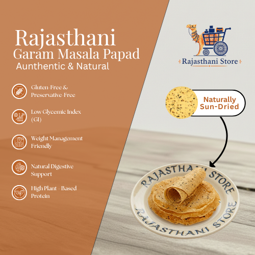 It seems you might be referring to Garam Masala Papad, a spicier, more aromatic version of the classic Indian crisp. While “Garam Masala” translates to “warm spice blend,” in the context of papad, it refers to a variety heavily seasoned with a complex mix of roasted spices.